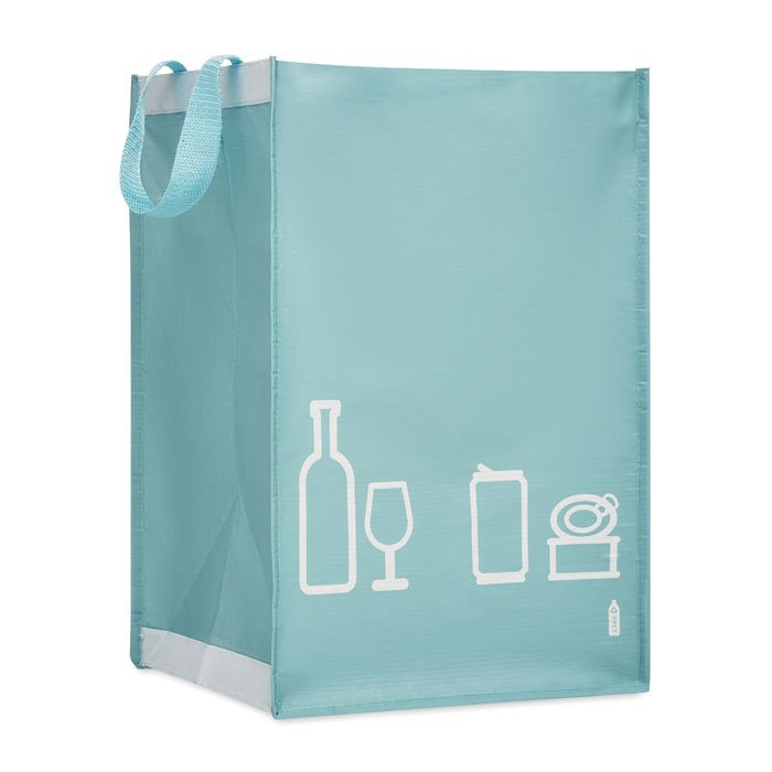This handy 3-in-1 waste bin bag helps to efficiently separate various waste items for recycling and is made of RPET. The 3 RPET non woven laminated bin bags help to separate paper, plastic, metal and glass. The bags can be connected via a hoop and loop closure, so they can be used individually or together. The bin bags have handles so they can be carried easily when they are filled up.