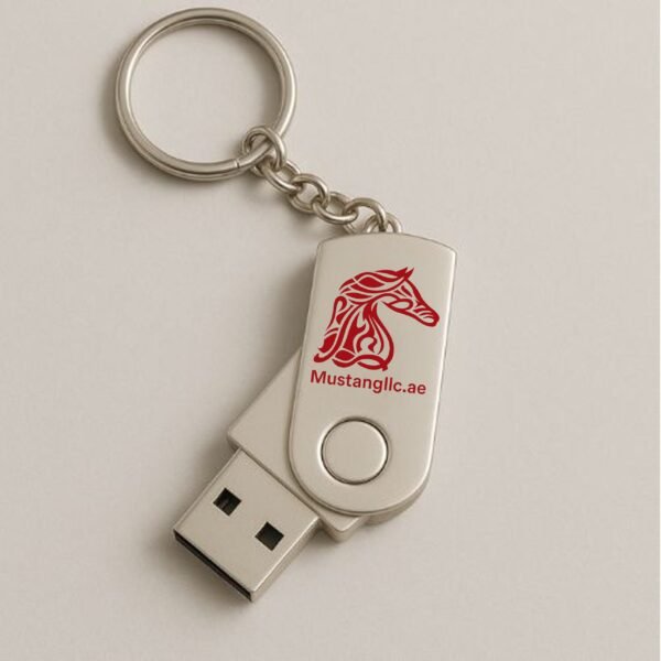 - 🖋️ Custom Logo Branding – USB drive with Mustangllc.ae engraving for promotions.
