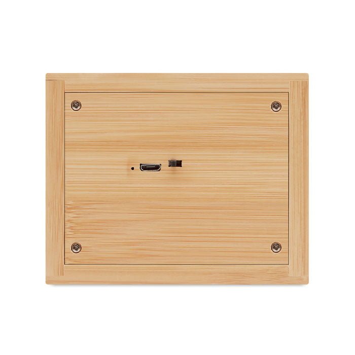 5.0 wireless speaker made from bamboo with a 10W wireless charger built-in. Usea cable to connect the speaker to your computer or laptop or power source forwireless charging. Then place your smartphone on it to commence charging. Whennot charging, you can take this portable speaker with you and listen to yourfavourite music wherever you are. Connect your mobile device wirelessly to thespeaker. It has a rechargeable 2000 mAh Li-Ion battery that has an approximateplaying time of 4 hours when fully charged. Output data: 3W, 4 Ohm. Bamboo is anatural product, there may be slight variations in colour and size per item,which can affect the final decoration outcome.