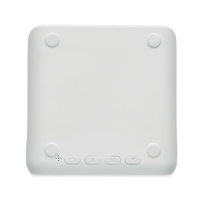 10W wireless charger device including white LED time display alarm clock in ABScasing. Contains USB charging cable with type C. Output: DC 9V/1.10A (10W) forquick charging. Compatible with latest Androids, iPhone® 8, X and newer. Thiscompact alarm clock with LED display is perfect for the bedroom on thenightstand. While you are sleeping, your phone is getting charged with thebuilt-in 10W wireless charging pad.