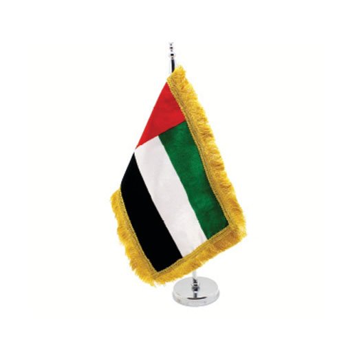 The Perfect Addition for UAE-Themed Displays: With its sophisticated appearance and thoughtful construction, the UAE National Day Table Flag with a dual-toned base is an ideal choice for themed displays. The blend of gold and silver tones brings a touch of refinement, while the quality craftsmanship ensures that it remains a prominent feature in any decor arrangement. Whether placed in a workspace or at an event, this table flag is a distinguished piece that reflects a commitment to the values and identity of the UAE.